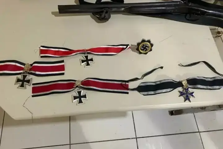 A Polícia Civil realizou uma prisão, nesta terça-feira (26), de um homem que estava em posse de materiais de cunho nazista em um sítio de Bocaiúva do Sul, na região Metropolitana de Curitiba. Foram encontrados medalhas e um símbolo com a suástica, todos fazendo alusão ao nazismo. Também foram encontradas asas de uma ave de rapina, em paralelo com a ideologia.