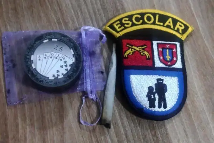 Um jovem de 18 anos foi encaminhado ao Batalhão de Polícia Militar para assinar um termo circunstanciado por consumo de drogas. Ele foi flagrado por militares da Patrulha Escolar durante um evento esportivo que aconteceu no Ginásio Amário Vieira da Costa, em Umuarama.