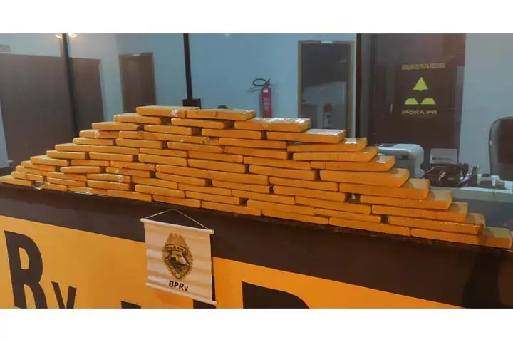 Durante operação no trevo de acesso a cidade de Iporã, na PR-323, a Polícia Rodoviária Estadual (PRE) flagrou o condutor de um veículo Fiat Uno de Catanduva-SP, que era conduzido por um homem de 29 anos. Por apresentar suspeitas, os policiais procederam com a abordagem. Em vistoria veicular foram encontrados no porta-malas 70 tabletes de maconha que totalizaram 77,22 quilos do entorpecente.