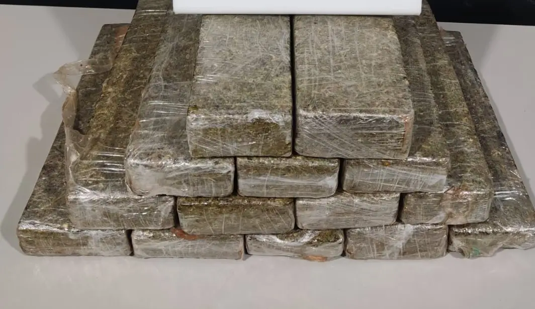 Durante a averiguação das malas dos passageiros, foi encontrada uma bolsa com vários tabletes de entorpecente. Durante as buscas no compartimento da bolsa de mão e assento que o proprietário estava foi encontrada outra mala que estava com mais tabletes da droga. Foram apreendidos 10 quilos de maconha.