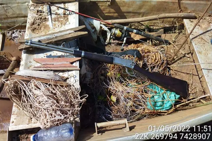 Na outra situação – na região de Douradina -, o segundo acusado tentou fugir dos policiais pulando do barco e se escondendo em uma mata nas margens do rio, porém foi logo localizado pelas autoridades. O homem possuía uma espingarda com cinco cartuchos e estava utilizando um espinel para captura dos peixes.