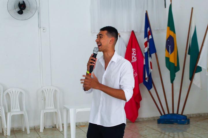 Na plateia os jovens ficaram atentos para ouvir as histórias e conhecimento sobre política do vereador mais novo do Brasil, Léo Flores. O jovem tem sido inspiração para outras pessoas na política. No encontro ele falou sobre como a participação das pessoas podem mudar a vida de uma comunidade, através de grupos e agente políticos comprometidos.