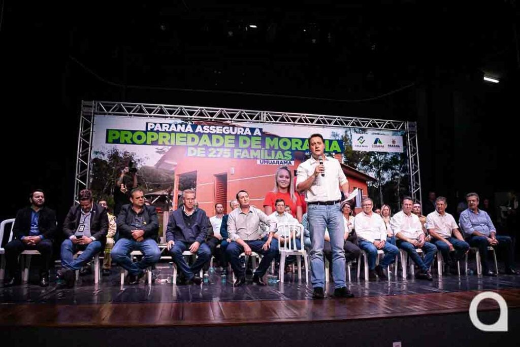 O prefeito refere-se à construção de ao menos 450 casas para famílias que mais necessitam, obras que serão realizadas por meio de convênio com o Governo do Estado e Cohapar (Companhia de Habitação do Paraná), como anunciou Ratinho Junior em seu discurso. “A determinação de Pimentel em realizar o sonho da casa própria para os umuaramenses foi passada aos deputados estaduais Delegado Fernando e Marcio Nunes, que intermediaram as negociações. E eu, como um governador que também tem como pilar a questão da habitação popular, já determinei a liberação de construção de 540 casas em Umuarama”, relatou.