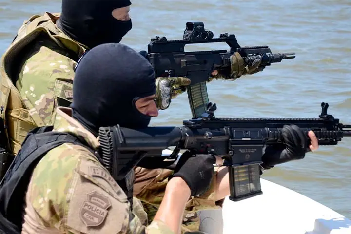 Já as aquisições envolvem os investimentos em equipamentos para os policiais de fronteira. Só no Paraná, já foram investidos R$ 13 milhões. Em dezembro de 2021, o Ministério da Justiça e Segurança Pública oficializou a entrega de capacetes balísticos, óculos de visão noturna, coletes balísticos, kits para atendimento pré-hospitalar e 32 novas viaturas para as polícias Militar e Civil que atuam na região de fronteira.