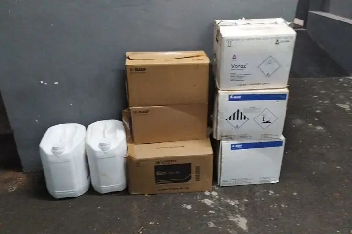 Segundo informações da PM, a abordagem do casal aconteceu em um veículo GM Corsa que estava estacionado em um posto de combustíveis. Após uma verificação no veículo, foram encontrados 14 galões (totalizando 100 litros) de fungicidas e 20 embalagens (totalizando 8,5 kg) de herbicidas.