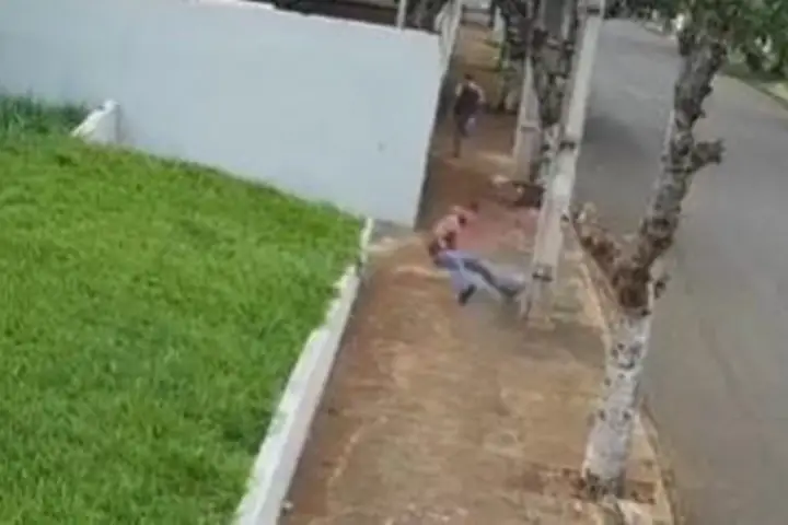 Imagens da câmera de segurança registraram toda a ação da dupla, que arremessaram drogas e celulares para pelo muro do presídio. Um dos indivíduos foge imediatamente após o delito, porém o outro se atrapalha na hora de jogar os objetos e dá de cara com um poste.