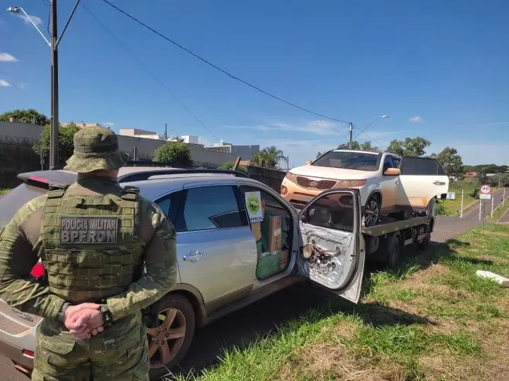 Policiais Militares do Batalhão de Polícia de Fronteira (BPFron) apreenderam dois veículos carregados com cigarros contrabandeados do Paraguai. Os militares patrulhavam a cidade de Umuarama quando avistaram dois veículos trafegando por uma via da cidade. Foi dado ordem de parada porém os condutores fugiram com os veículos.