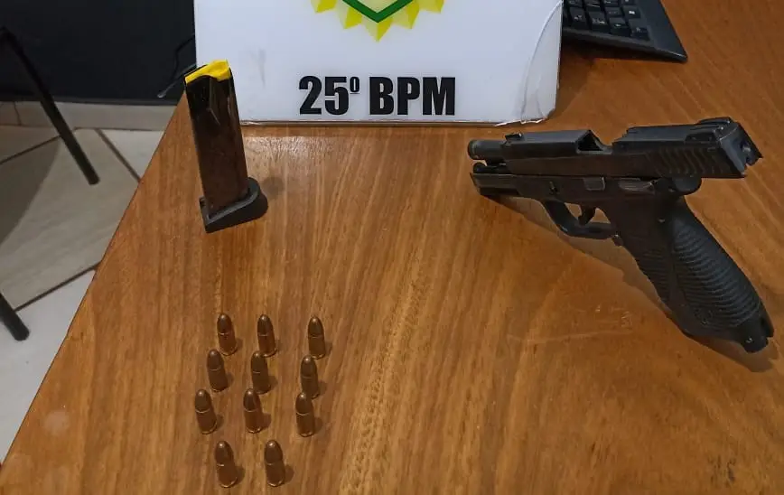 Na revista pessoal, os policiais encontraram uma pistola Taurus de calibre 9mm. O homem recebeu voz de prisão e foi encaminhado para os procedimentos na Delegacia de Polícia Civil. Ele informou aos policiais que havia comprado a arma para sua defesa pessoal.