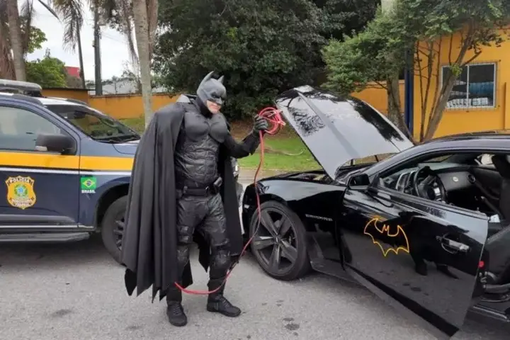 A Polícia Rodoviária Federal (PRF) lidou com uma situação de resgate um tanto inusitada na BR-101, Em Biguaçu, Santa Catarina: Na tarde de segunda-feira (9) os policiais tiveram de socorrer o Batman após o Batmóvel ficar sem bateria na rodovia. Com o auxílio de um cabo de carga os policiais conseguiram socorrer ao super-herói.