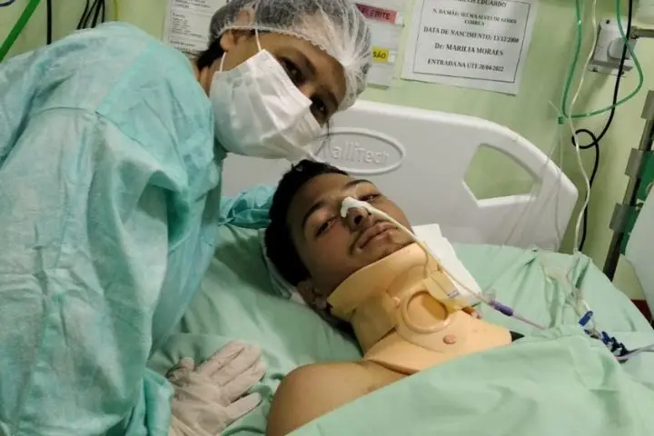 Passado o momento mais crítico e com a dor sob controle, no sábado iniciamos a redução da sedação. Com a boa evolução, no domingo foi possível retirar os tubos que ajudam a manter as funções vitais ativas, como a respiração. Ao ver a mãe, ele conversou e comoveu a ela e a todos nós”, disse a doutora Fabiana.