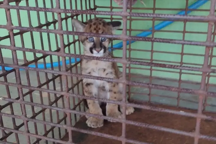 A Polícia Militar Ambiental resgatou na noite de quarta-feira (11) um filhote de onça da espécie Suçuarana que estava no interior de uma residência, no distrito de Santa Felicidade, em Tapira. De acordo com o morador da casa, após perceber um barulho em um cômodo, ele verificou a presença do animal e o trancou até a chegada da equipe policial.