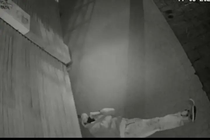 O vídeo mostra o suspeito tentando arrombar a porta de metal de um bar utilizando um pedaço de madeira como alavanca. Tentando disfarçar o delito, o homem deita na rua fingindo ser um morador de rua dormindo sempre que algum carro se aproxima. Assim que conseguiu abrir um buraco na porta do bar, o homem rastejou para dentro e furtou o estabelecimento.