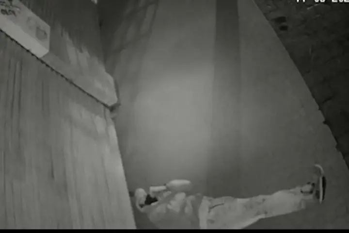 O vídeo mostra o suspeito tentando arrombar a porta de metal de um bar utilizando um pedaço de madeira como alavanca. Tentando disfarçar o delito, o homem deita na rua fingindo ser um morador de rua dormindo sempre que algum carro se aproxima. Assim que conseguiu abrir um buraco na porta do bar, o homem rastejou para dentro e furtou o estabelecimento.