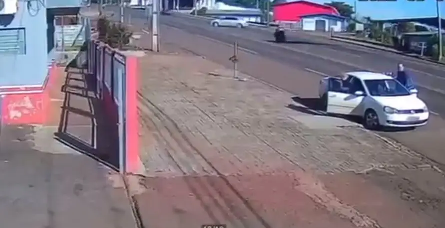 Um acidente fatal envolvendo uma motocicleta e um automóvel, registrado no último domingo (8), foi flagrado por uma câmera de segurança, em Dois Vizinhos, Sudoeste do Paraná. Um motociclista e uma criança, de 7 anos, que estava no carro com outras três pessoas, morreram.
