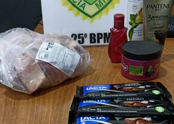Um homem de 27 anos foi preso no final da tarde desta quarta-feira (18) em Umuarama. Ele é suspeito de furtar três barras de chocolate, condicionador Dove, condicionador Pantene, óleo corporal Paixão, um creme Monage, além de 1,718 quilos de costela ripa.