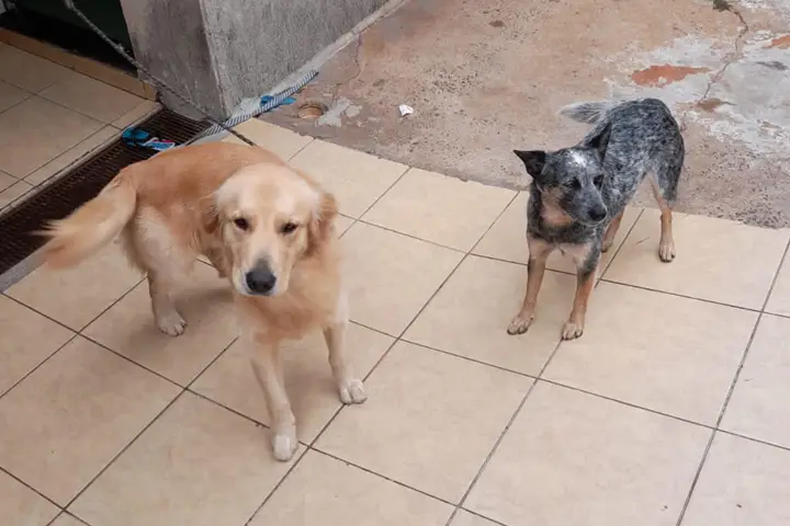 Moradores acolhem cães Golden Retriever e Blue Heeler que vagavam perdidos em Umuarama