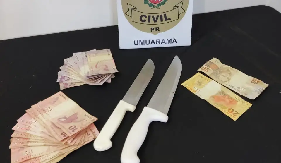 Foram apreendidas duas facas e o dinheiro recuperado.