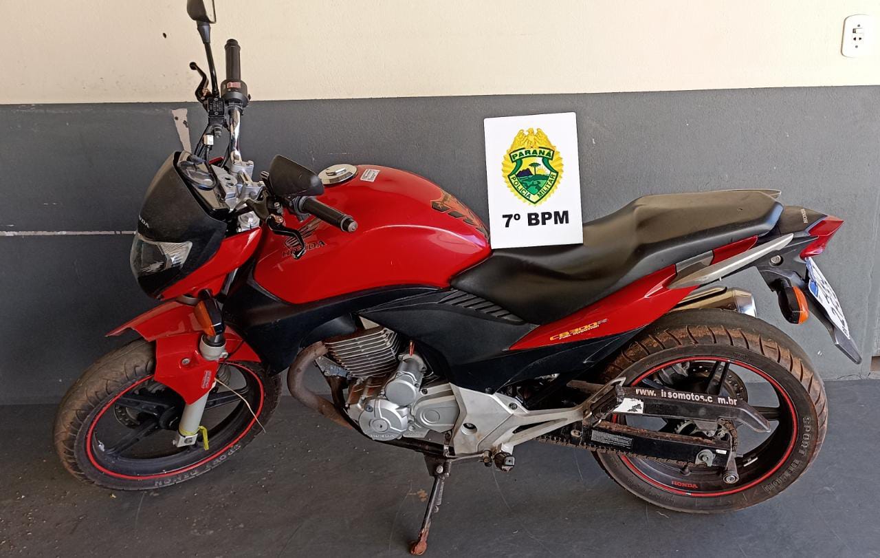Com apoio dos policiais da Rotam a moto tinha denúncia de roubo e foi reconhecida pelo proprietário.