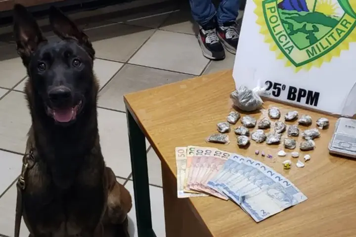 Na madrugada deste sábado (21) policiais do 25º Batalhão da Polícia Militar (BPM) fizeram a apreensão de quantidades de drogas – dentre estas cocaína – que estavam sendo traficadas no bairro Sonho Meu I, em Umuarama. A apreensão ocorreu com ajuda de um cão farejador do Canil da PM.