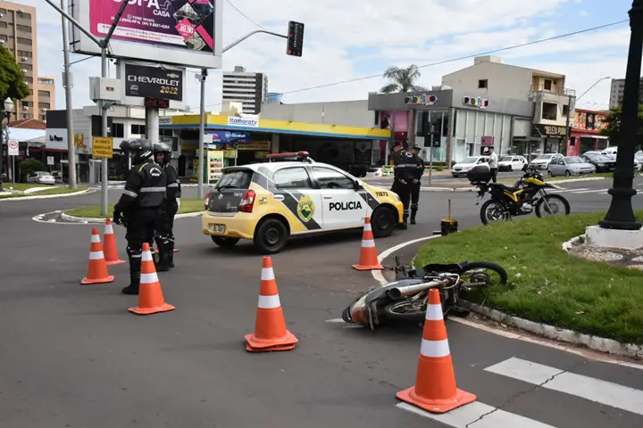 Motociclista fica ferido após colidir contra automóvel em cruzamento da avenida Paraná