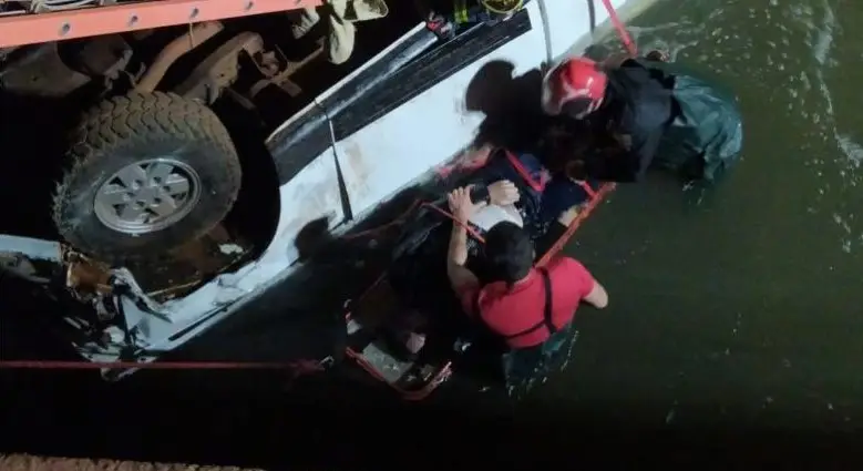 Durante o percurso sentiram a falta do terceiro veículo que vinha logo atrás, dirigido por Hungaro e, ao retornarem, encontraram a caminhoneta com o teto submerso dentro do rio.