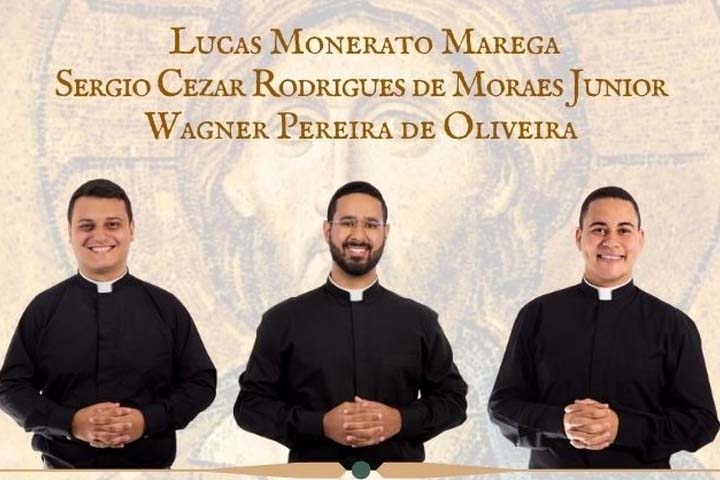 No dia 30 de julho de 2022, às 19h30 horas, na Catedral do Divino Espírito Santo, Dom João Mamede Filho, Bispo da Diocese, realizará a celebração de ordenação diaconal dos seminaristas: Lucas Monerato Marega, Sérgio Cezar Rodrigues de Moraes Junior e Wagner Pereira de Oliveira.