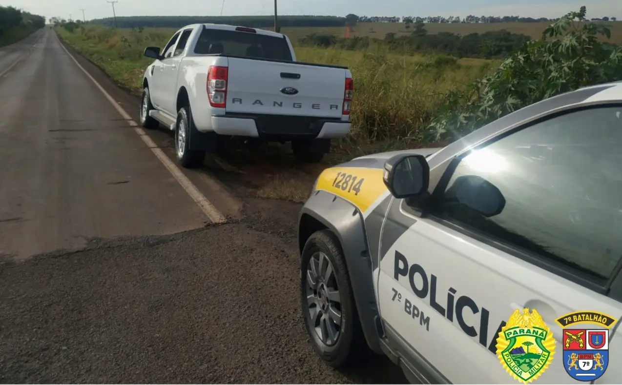 Ao coletar informações de que os criminosos teriam tomado fuga em sentido ao município de Cianorte, os policiais seguiram pelo mesmo caminho, realizando patrulhas entre a área rural e o município de Indianópolis, localizando a camionete subtraída no roubo às margens da rodovia.
