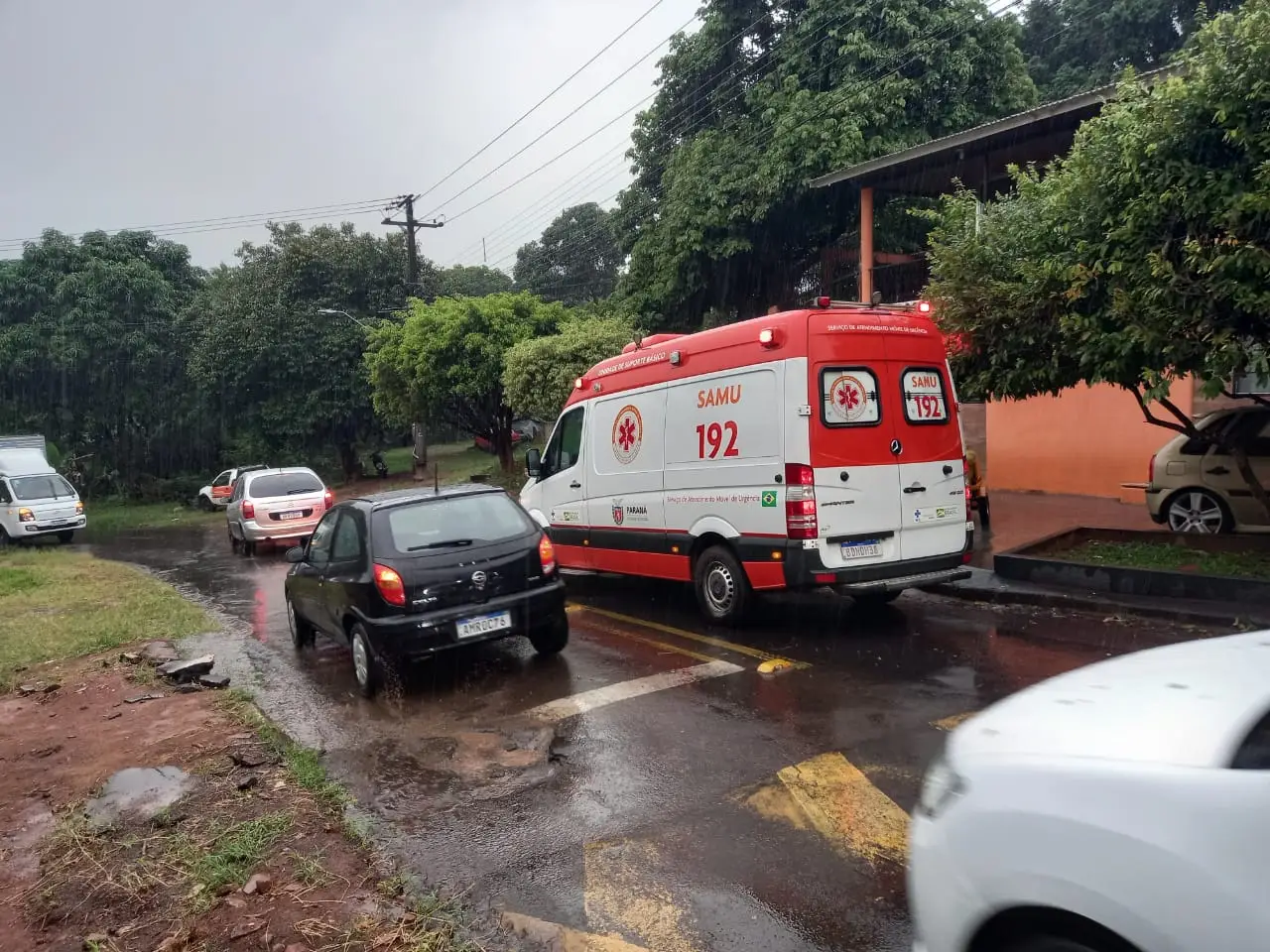 Devido à chuva o asfalto ficou escorregadio, fazendo com que a moto acabasse derrapando. O condutor vinha em sentido ao Jardim Panorama.