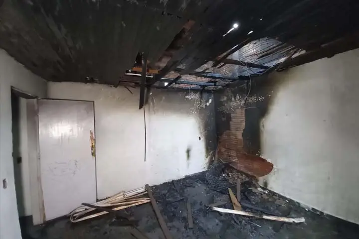 Um cômodo da casa ficou destruído. No imóvel não havia nenhuma pessoa. Testemunhas chegaram informar aos bombeiros que, uma pessoa teria ido ao local e removido alguns pertences.