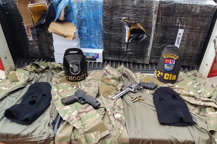 A PM foi informada do ocorrido e realizou um cerco em possíveis rotas de fuga da quadrilha. Na região de Presidente Castelo Branco, uma guarnição do Pelotão de Choque avistou os suspeitos.