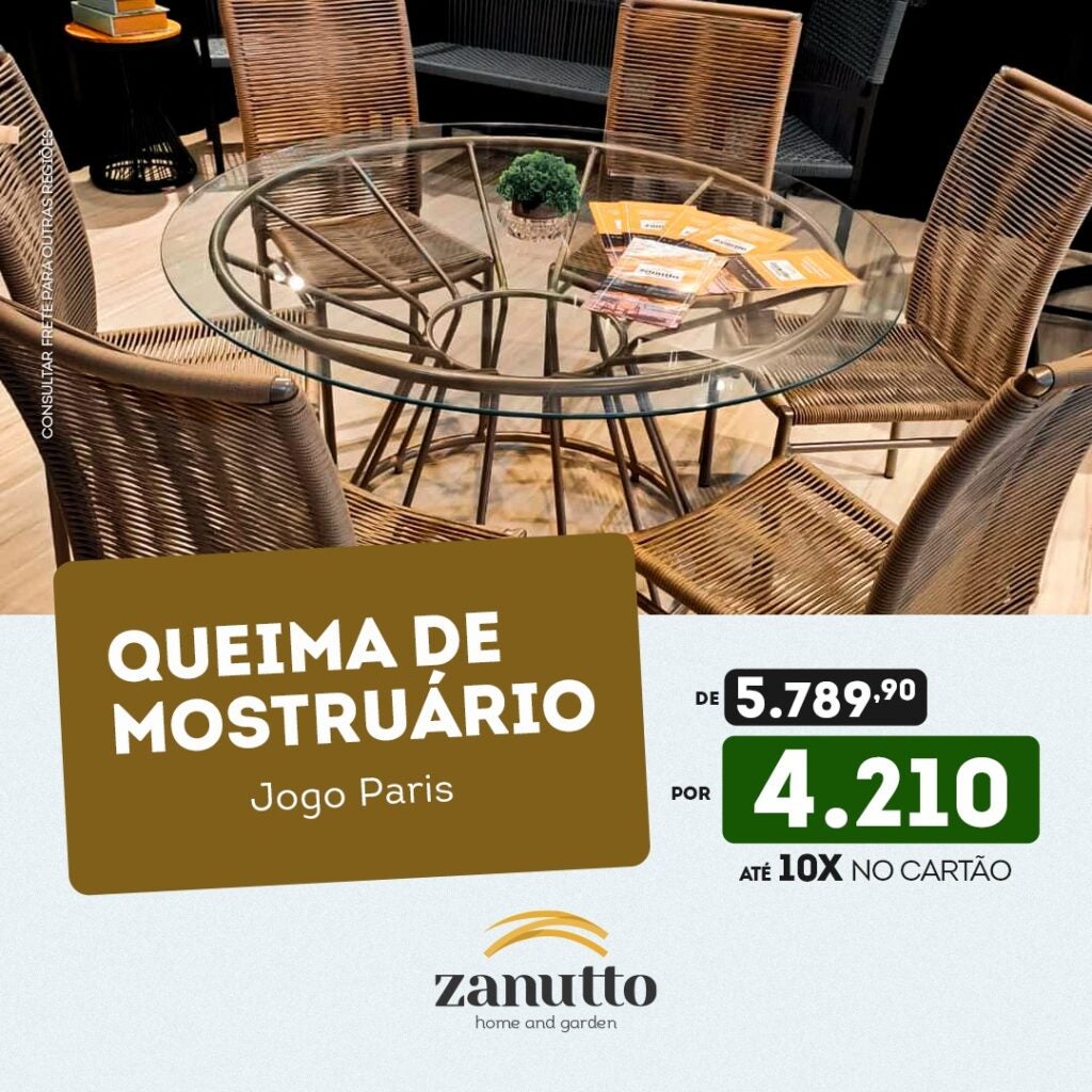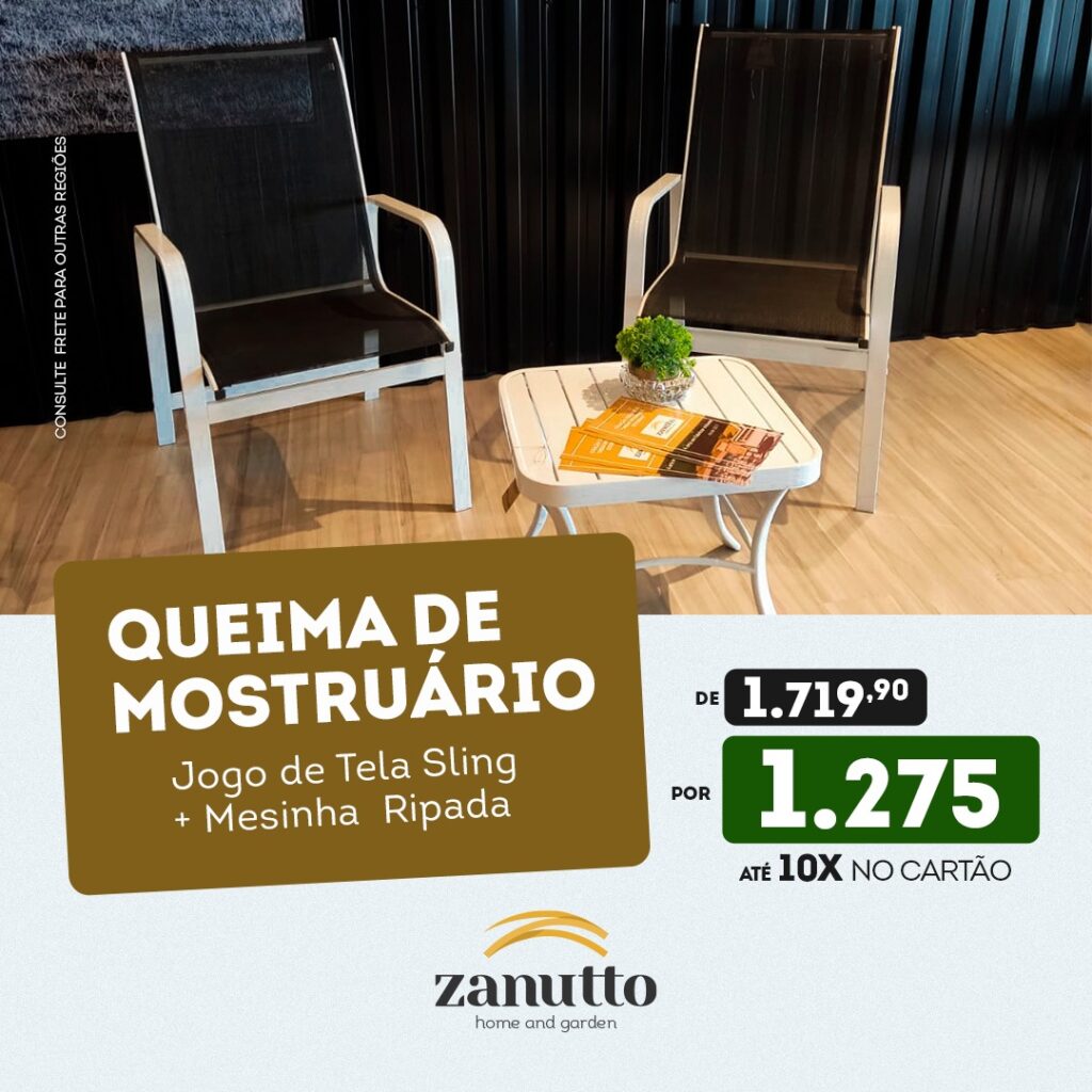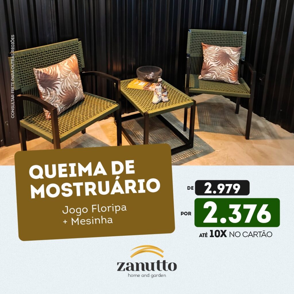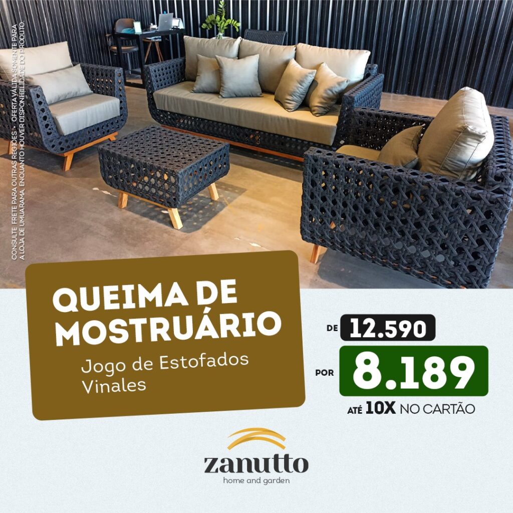 A Zanutto Móveis está liquidando o mostruário da loja de Umuarama e oferece descontos reais em vários itens para espaços abertos e fechados da residência. A empresa é especializada em móveis diferenciados, produzidos com estrutura de alumínio, cordas e crochês náuticos. A promoção vale enquanto durarem as disponibilidades.