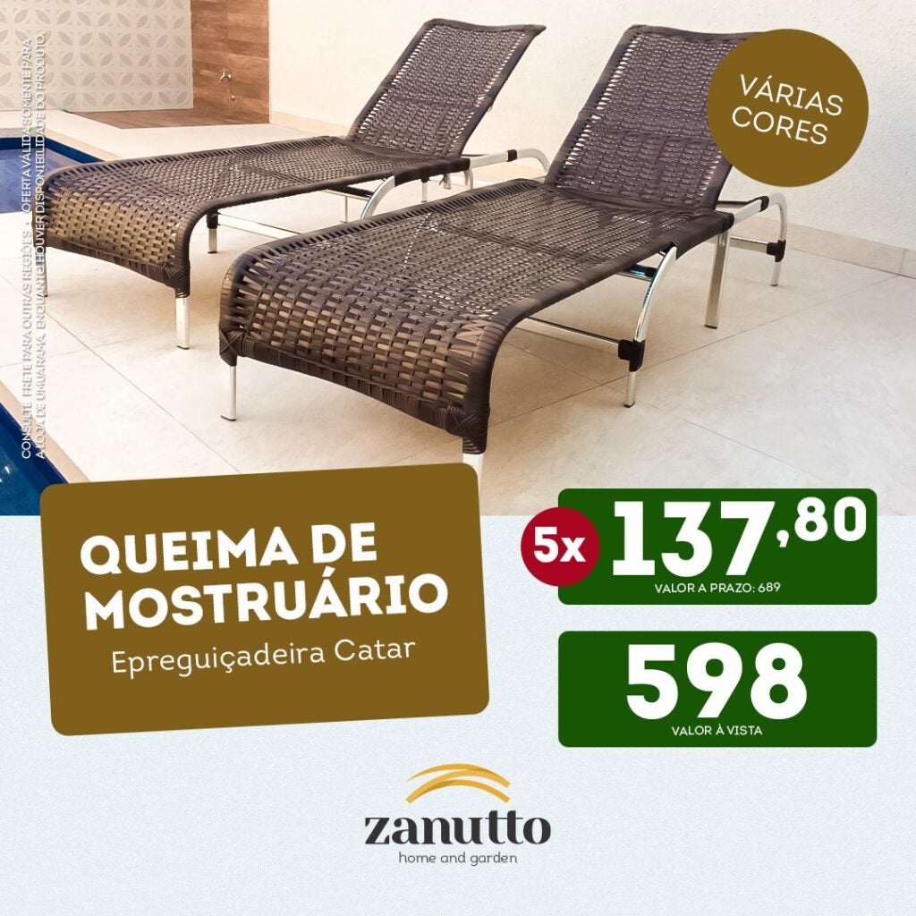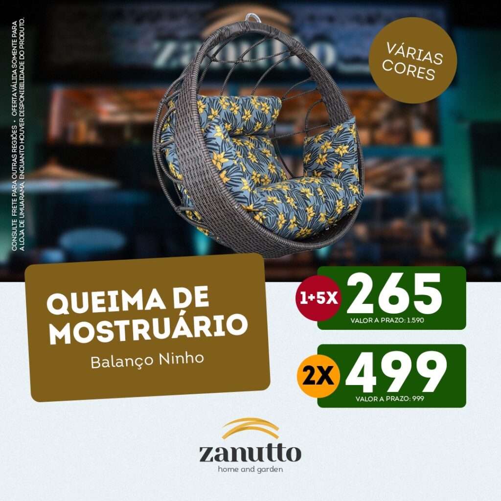 A promoção é válida somente para a loja de Umuarama, que está localizada na na Rua Otacílio José de Arruda, 7295, próximo ao Atacadão. Para mais informações, clique aqui e mande uma mensagem pelo whatsApp. Siga o Instagram da Zanutto e fique por dentro de todas as novidades.