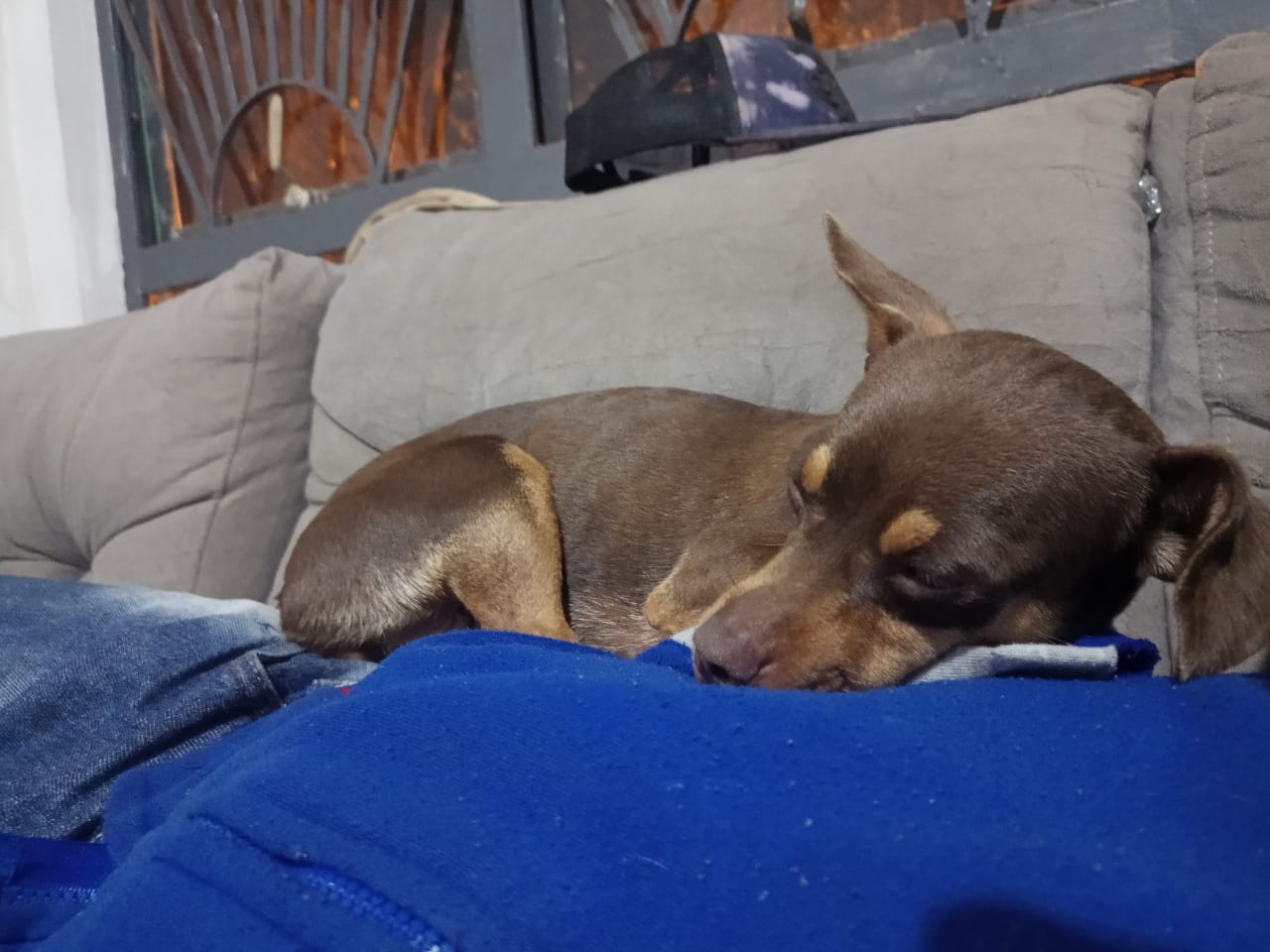 A cachorrinha pinscher da foto acima foi vista por muita gente tentando entrar no pavilhão do parque de exposições de Umuarama, onde o presidente Jair Bolsonaro discursou na última sexta-feira (3).