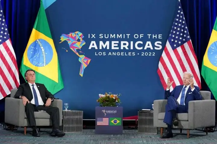 O presidente Jair Bolsonaro e o presidente dos Estados Unidos, Joe Biden, tiveram um encontro bilateral na noite desta quinta-feira (9), em Los Angeles, durante a 9º Cúpula das Américas, que reúne líderes da maioria dos países do Hemisfério Ocidental.