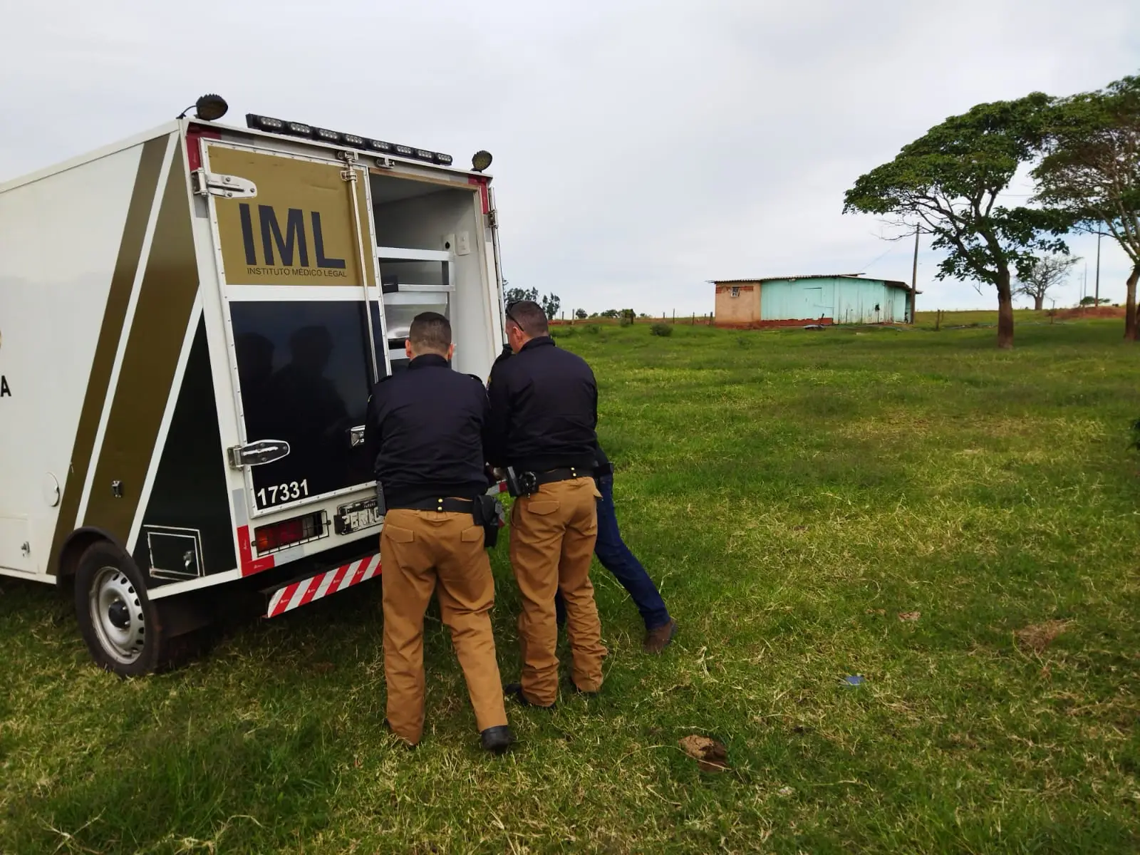 O arrendatário chamou a Polícia Militar (PM), que isolou o local. A Polícia Científica documentou o espaço e o IML (Instituto Médico Legal) recolheu o corpo. O rapaz é moreno, vestia calça jeans preta, camiseta vermelha e tênis escuro.