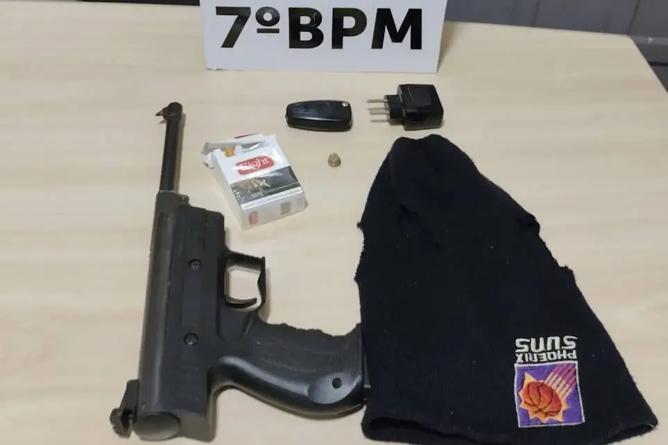 No interior da caminhonete foram encontrados vários pertences que haviam sido roubados das vítimas, além de uma pistola de pressão que foi adaptada para o calibre .22, além de uma munição deflagrada. Também havia uma balaclava na cor preta e uma munição intacta.