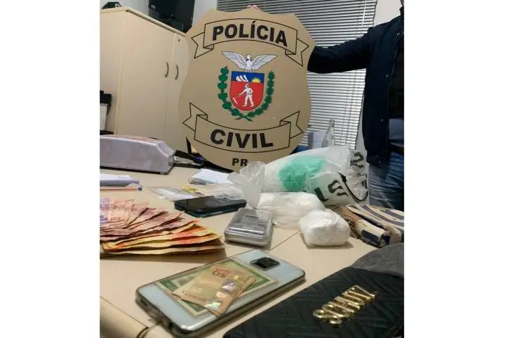 Foram apreendidos celulares, cerca de R$ 1 mil em espécie, 215 gramas de cocaína, balança de precisão e embalagens utilizadas para empacotar as porções de droga.