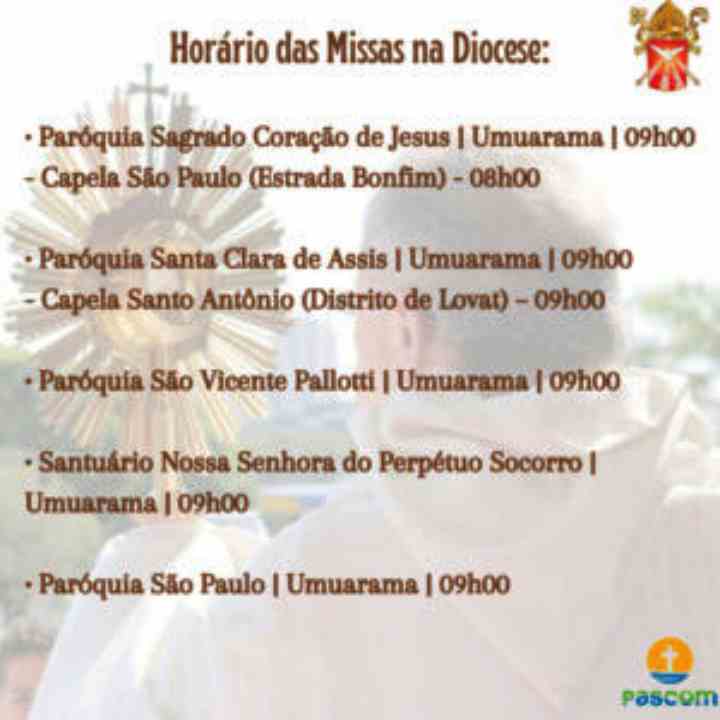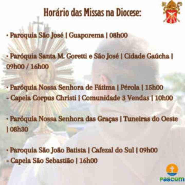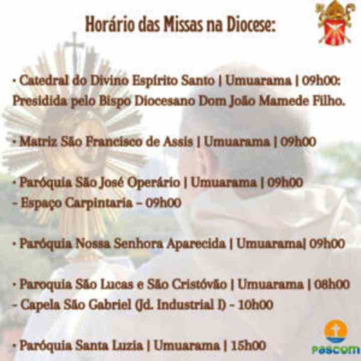 Veja os horários das celebrações do Corpo de Cristo pela Diocese: