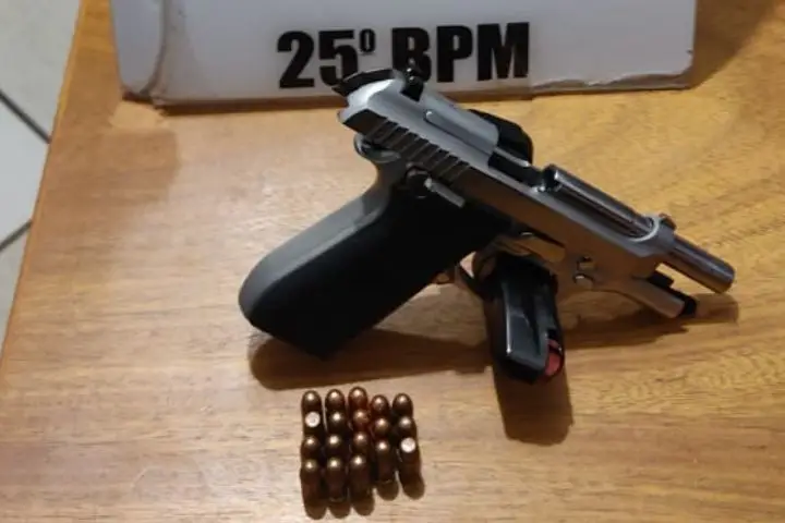 A suposta vítima procurou os policiais na sede do 25o BPM. Uma equipe de policiais saiu em diligência e encontrou o acusado em um veículo Corolla. O motorista ainda tentou fugir. Dentro do veículo foi encontrada a arma, que foi apreendida.