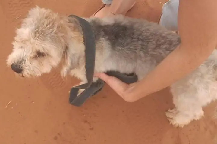 Nala é uma cachorrinha marrom, de pelagem tosada que está com uma coleirinha vermelha. Thamires está oferecendo uma gratificação a quem encontrar e devolver a cachorrinha.