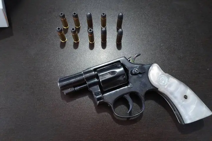 Após uma checagem no veículo, os policiais descobriram a arma de fogo, que estava desmuniciada. No porta-luvas também foi encontrado uma caixa branca contendo 10 munições intactas do mesmo calibre.