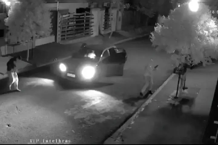Na sequência, o motorista aparece mancando com uma pistola em mãos, seguido por outro suspeito que segura algo que se assemelha com uma submetralhadora, que possivelmente realizou disparos contra outras duas pessoas.