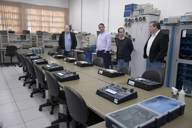 Recebidos pelo gerente regional de Educação Profissional, Luiz Antônio Mendonça, e pela coordenadora de Educação, Sílvia Horwat, eles conheceram os laboratórios, equipamentos e instalações da instituição, que conta hoje com quase 500 alunos em cursos técnicos, Educação de Jovens e Adultos (EJA) e Ensino Médio.