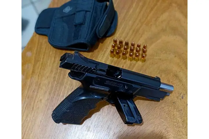 Além da pistola marca cherokee que estava com um homem de 36 anos, os policiais apreenderam um veículo GM/Montana, cor preta, ano 2006, por suspeita de transportar contrabando em direção a Umuarama. Ao consultar a documentação, foi constatado que o carro apresentava adulteração no sinal identificador do motor.