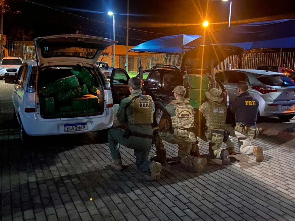 Policiais de uma ação integrada abordaram três veículos que tinham como destino o estado do Ceará. Eles foram acompanhados até o município de Goioerê-PR, para onde empreenderam fuga. Neles foram apreendidos 666 quilos de maconha e 5 pessoas foram presas.