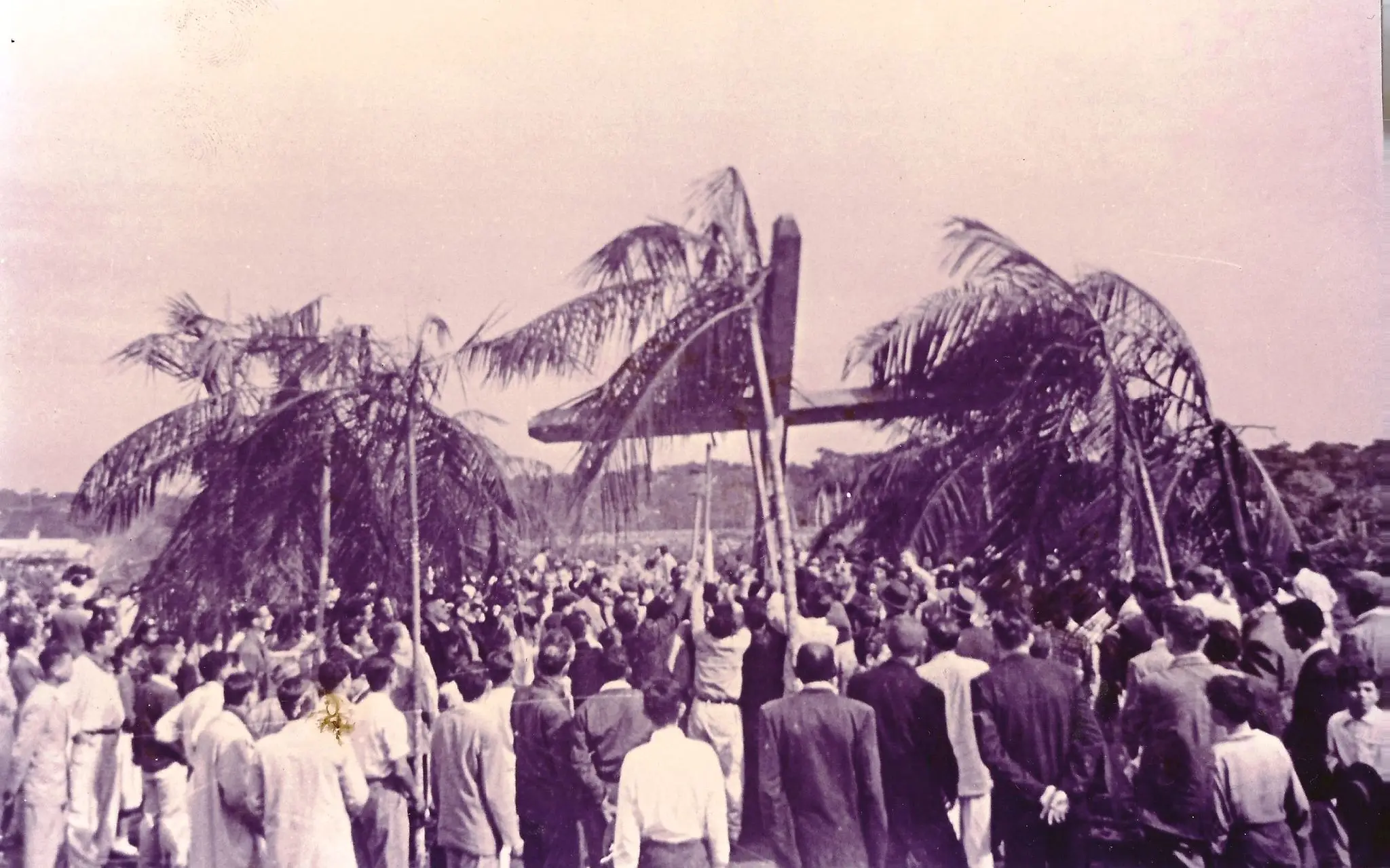 Missa de fundação de Umuarama, celebrada a céu aberto, na quadra de terras onde hoje está a Igreja Matriz