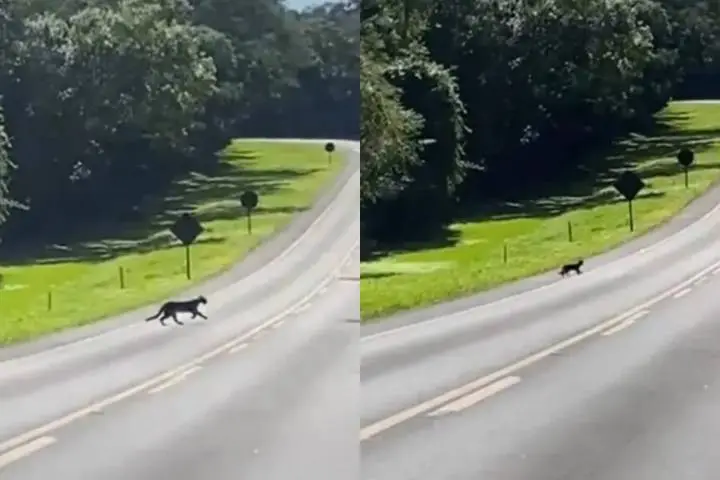 Guias turísticos de Foz do Iguaçu ficaram encantados ao avistarem uma onça-parda – também conhecida como Puma – atravessando uma rodovia junto com seu filhotinho, na tarde desta quarta-feira (29).