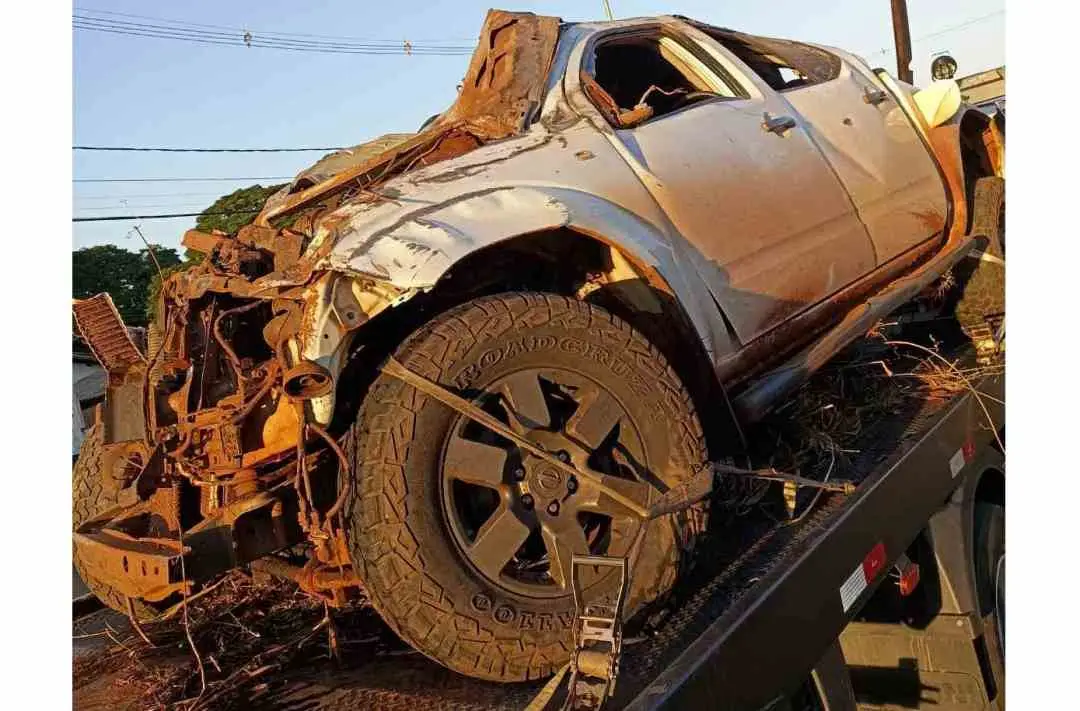 Foi realizado acompanhamento pela PR-487. Os policiais tentaram fazer a abordagem com sinais sonoros, mas o condutor da caminhonete não acatou. No trecho entre Serra dos Dourados e Ivaté o motorista acabou capotando a Frontier e ainda colidiu na viatura.
