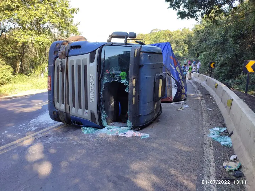 Uma carreta tombou na última sexta-feira (01) na rodovia BR-277 no KM 484 em Nova Laranjeiras/PR e uma parte da carga foi saqueada por indígenas.