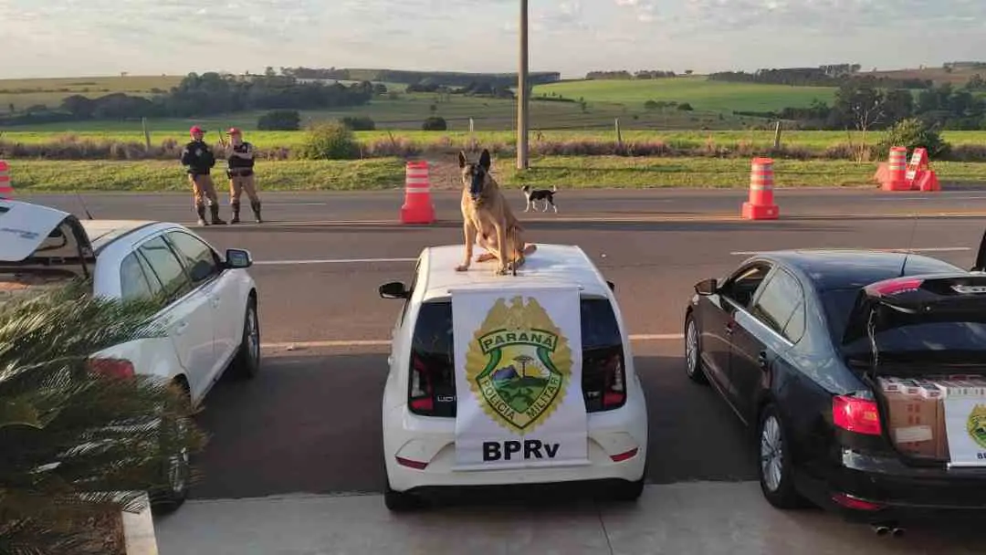Durante operação Narco Brasil, realizada no último domingo (3) na PR-323 próximo ao município de Perobal, policiais rodoviários abordaram um VW/UP que estava trafegando como batedor de uma carga de cigarros.